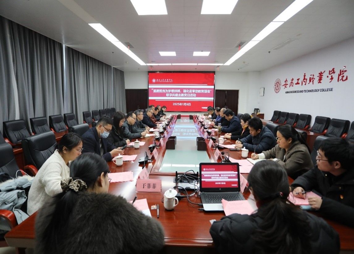 为进一步深入贯彻落实习近平新时代中国特色社会主义思想和党的二十大精神,加强基层党组织建设、推动党建工作创新发展,1月6日下午,安徽省教育厅监审处党支部、必赢线路检测3003直属第二党支部、安徽职业技术学院审计处党支部、安徽省招标采购协会党支部联合开展的“挺膺担当为梦想拼搏,强化监审助教育强省”联学共建主题党日活动在必赢线路检测3003举行。活动由校党委副书记陈行主持。