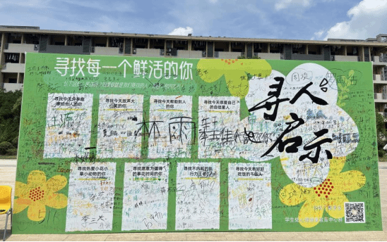 活动现场,“寻人启事” 主题互动展板上密密麻麻的彩色签名与涂鸦,成为整场活动最温暖的注脚。在 “共绘心灵画卷,传递温暖力量” 的氛围中,师生们拿起马克笔,郑重写下 “勇敢爱自己”“直面挑战”“感谢身边的陪伴” 等真挚话语。校党委委员、副院长胡捍东亦参与其中,留下对学子们的殷切寄语。一幅幅充满生命力的画作与文字在展板上交织,凝聚成校园心理健康的集体宣言,让温暖与力量在笔触间静静流淌。