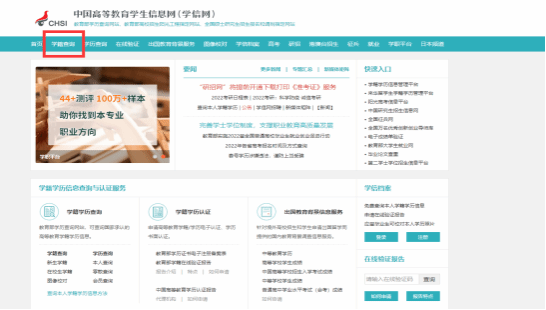 1.登陆教育部“中国高等教育学生信息网”(简称“学信网”),网址为http://www.chsi.com.cn,点击“学籍查询”模块;