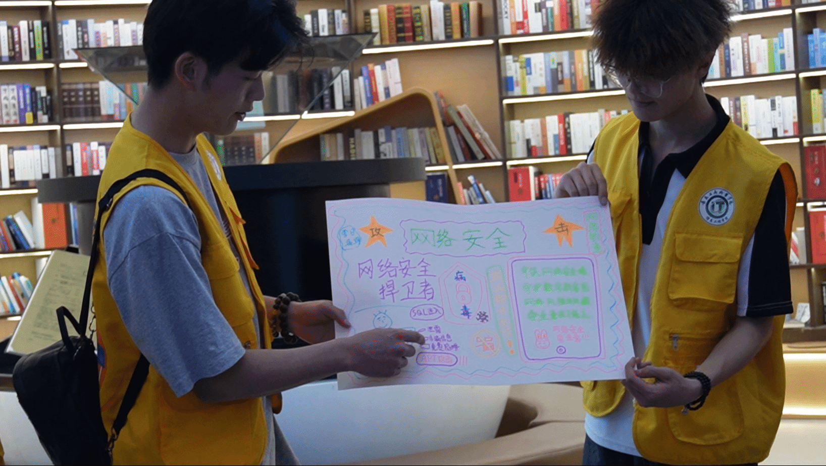 活动伊始,师生们在讲解员的引导下参观科教主题展区,系统学习科技发展与安全防护知识。从5G技术应用到人工智能风险防范,从数据安全案例到网络安全前沿技术,沉浸式学习让同学们深刻认识到“科技强国”与“安全护航”的紧密联系。随后,一场别开生面的“网络安全挑战赛”拉开帷幕,学生们随机抽取 “防火墙”“数据加密”“漏洞扫描” 等35个专业术语卡片,并根据基础概念类、防御技术类、数据保护类等五大类别迅速组建5支特色战队。各战队化身“网络安全卫士”,通过创意队旗设计将抽象技术概念转为可视化表达。例如,“防火墙战队”以动态代码流构成盾牌模型,现场模拟网络攻防中数据拦截的实时场景;“数据守护战队”则搭建了“迷宫寻钥”互动装置,通过钥匙与锁孔的精密咬合,直观演示隐私数据加密的核心原理。趣味化、专业化的展演,让晦涩的网络安全技术变得生动可感,有效提升了同学们的网络安全意识和防护技能。