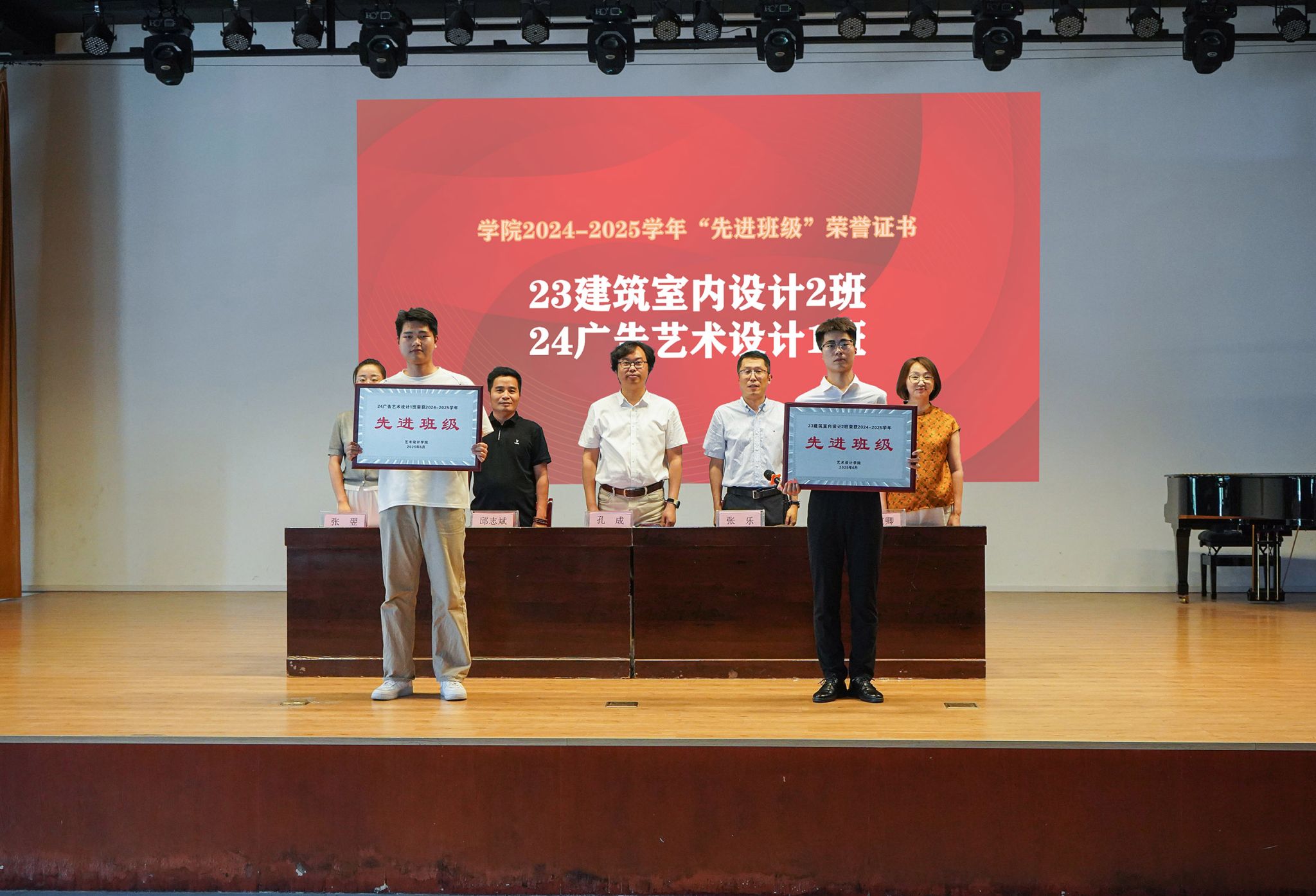 大会在庄严的国歌声中拉开帷幕。张乐宣读了《关于表彰2024-2025学年艺术设计学院“先进班级”“学习标兵”“优秀学干”的决定》,对2个“先进班级”、29名“学习标兵”、31名“优秀学干”予以表彰。与会领导依次为获奖集体和个人颁发荣誉证书,勉励他们再接再厉,发挥榜样作用。