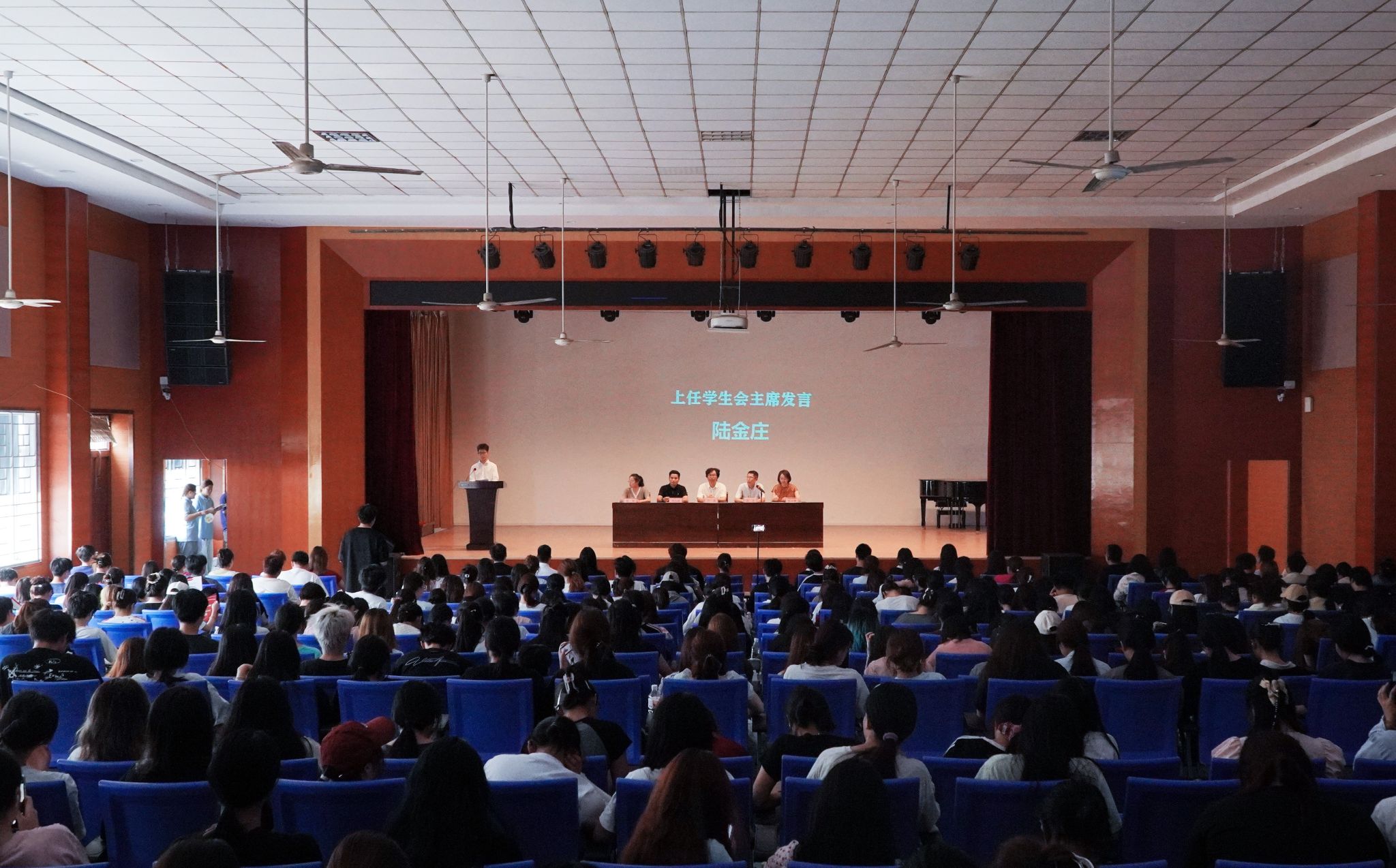 会上,上任学生会主席23级建筑室内设计2班陆金庄做了发言,汇报了过去一年学生会及社团的工作成果,表达了对学院的支持和感谢;新任学生会主席团代表24级产品艺术设计1班王瑾程表示将继承优良传统,锐意创新,未来将以服务同学为宗旨,搭建师生沟通的桥梁,通过举办多元化的学术活动和创意赛事,激发校园活力。王瑾程还提出将重点关注学生权益,推动信息化服务平台建设,让每位同学的声音都能被听见。随后,两届学生会代表完成会旗交接,象征责任与使命的传承。