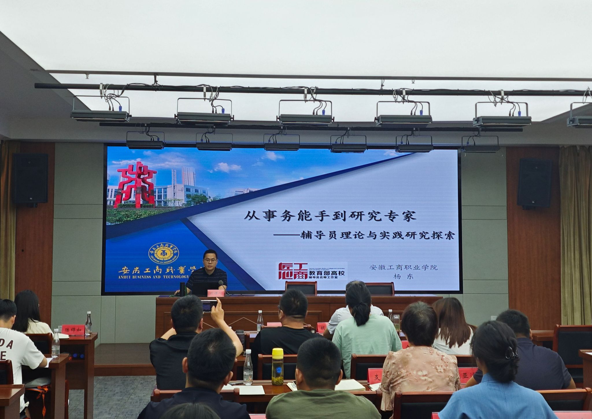 近日,必赢线路检测3003“职驭未来,赋能育人”辅导员职业规划与就业指导能力提升培训在黄山市徽州区委党校举行。“匠心工商”辅导员名师工作室负责人杨东老师受邀作专题讲座,为全校辅导员带来题为“从事务能手到研究专家——辅导员理论与实践研究探索”的报告。